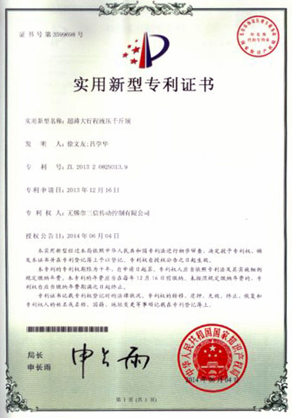 公司發(fā)明專利產(chǎn)品-超薄雙級(jí)大噸位單作用液壓千斤頂